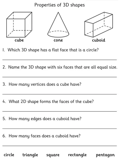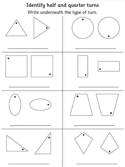 These Year 2 geometry worksheets give students an opportunity to explore properties of 2D and 3D shapes, identify symmetry in regular and irregular shapes, compare angles to right angles, and recognise half and quarter turns. They help children build spatial awareness and confidence in geometry through fun, practical exercises.