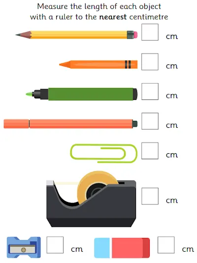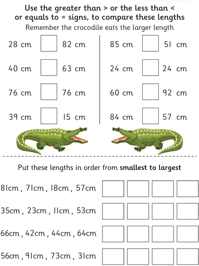 Year 2 measuring worksheets include activities for measuring in centimetres, comparing lengths and masses, learning days of the week and months of the year, and telling the time. These practical exercises help children develop key measurement and time skills through engaging and confidence-building tasks.