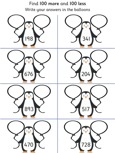 Year 3 counting worksheets help children practise counting in multiples including 50s, identify 100 more or 100 less than three-digit numbers, and read and convert Roman numerals up to 20. These activities build number sense and confidence with number patterns.