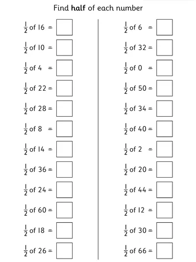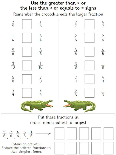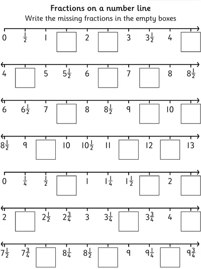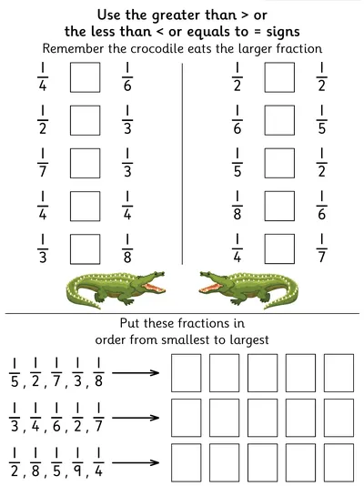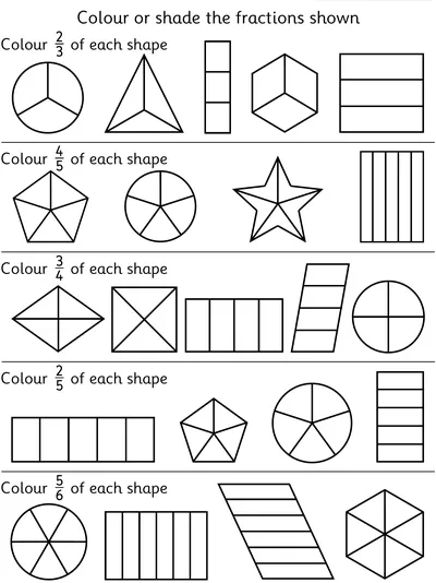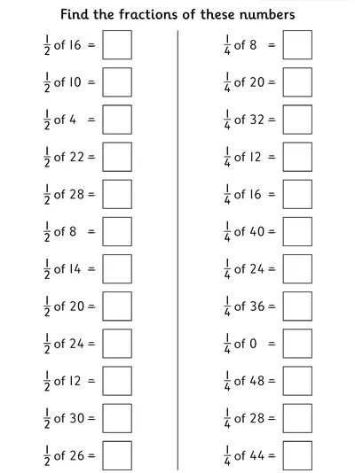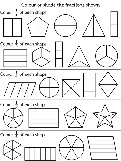 These free fractions worksheets help children identify unit and non-unit fractions of shapes, find halves, thirds, and quarters of quantities, and complete number lines with missing halves and quarters. Learners also explore equivalent fractions, and practise comparing and ordering fractions.