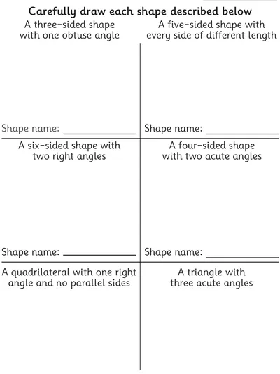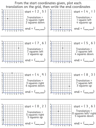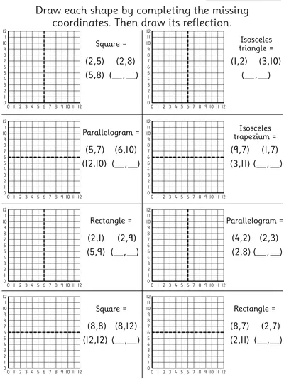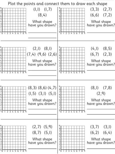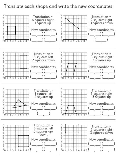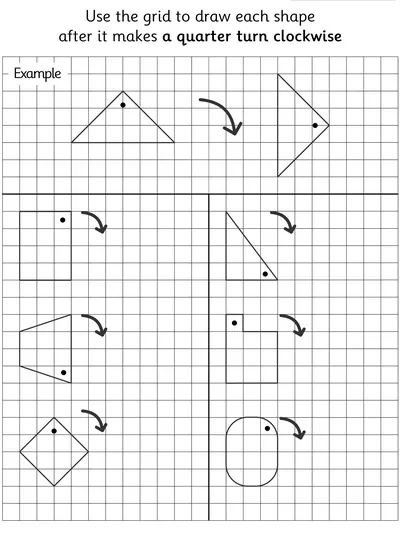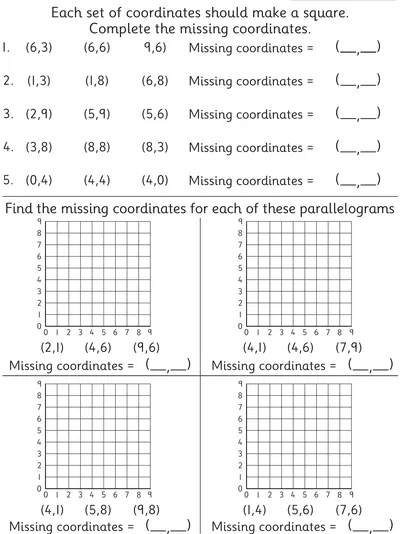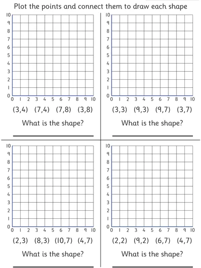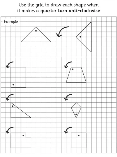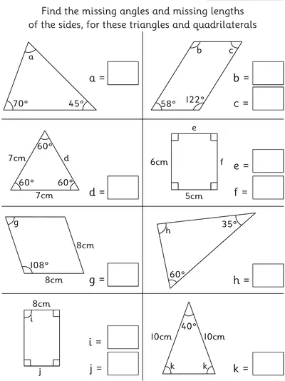 These geometry worksheets offer activities designed to strengthen spatial reasoning and shape recognition. Practise identifying types of angles, measuring and ordering them accurately, and classifying triangles by their sides and angles. Explore the properties of quadrilaterals, calculate the area, perimeter, and volume of composite shapes, and plot points, including translations, on 2- and 4-quadrant grids.