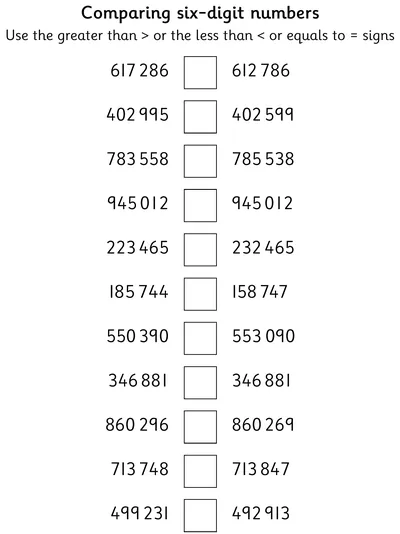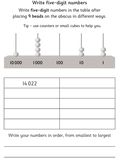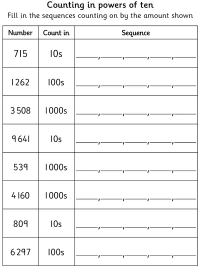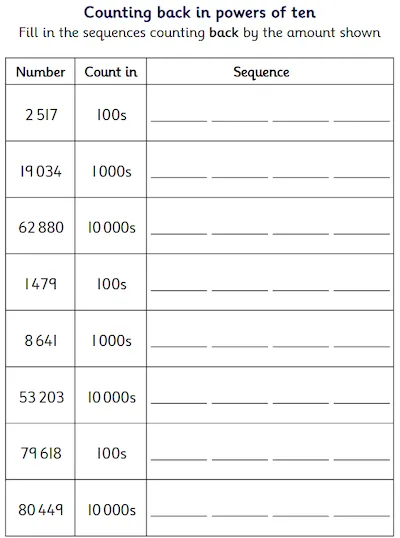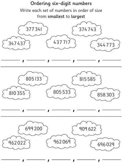 These ordering worksheets focus on comparing and sequencing numbers up to six digits, counting forwards and backwards in steps of powers of 10, and working with negative numbers. Learners build confidence in number sense, place value, and logical sequencing through engaging activities.